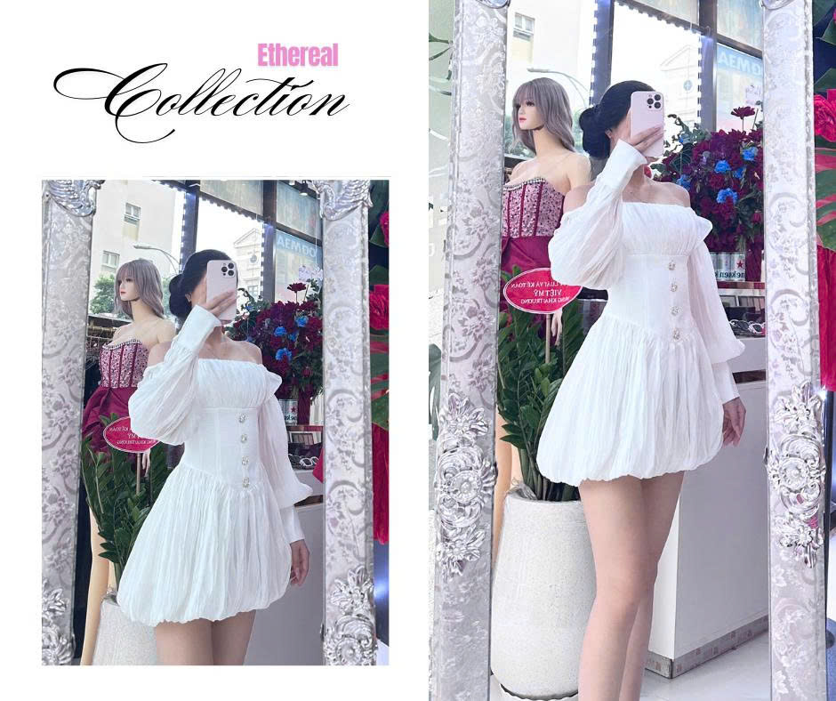 Loại sản phẩm: Váy dáng xoè trễ vai tay dài