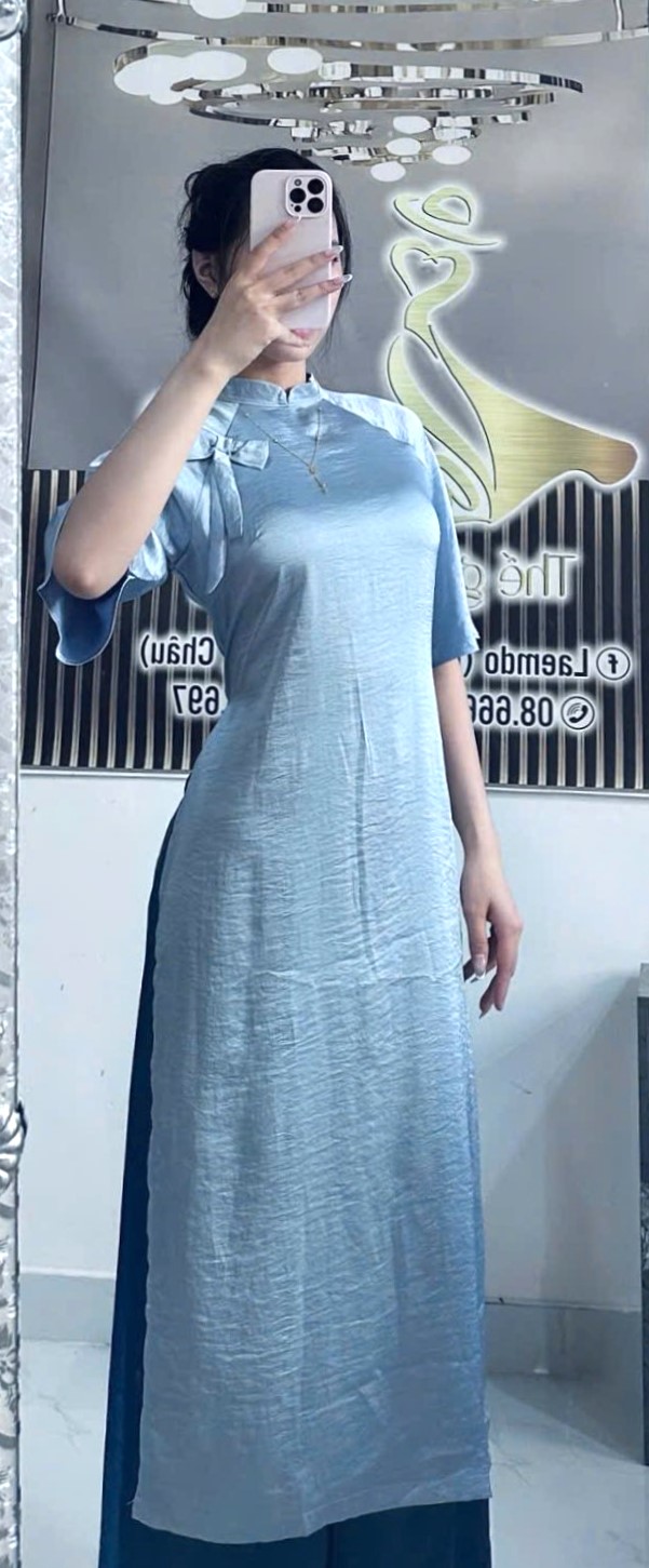 ÁO DÀI XANH CỔ TÀU NƠ VAI