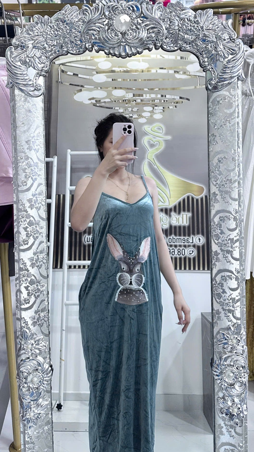 • Họa tiết thêu hình thỏ dễ thương kết hợp hạt đính lấp lánh, tạo điểm nhấn độc đáo và đáng yêu.