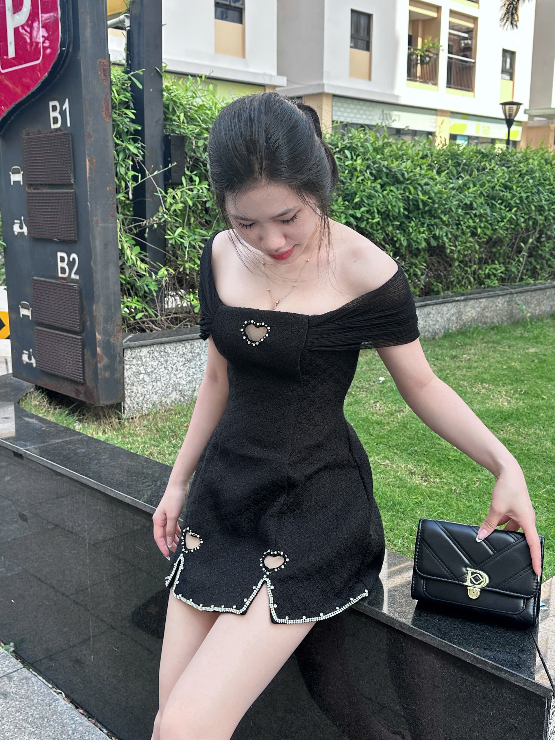 VÁY ĐEN ĐÍNH ĐÁ TRÁI TIM
