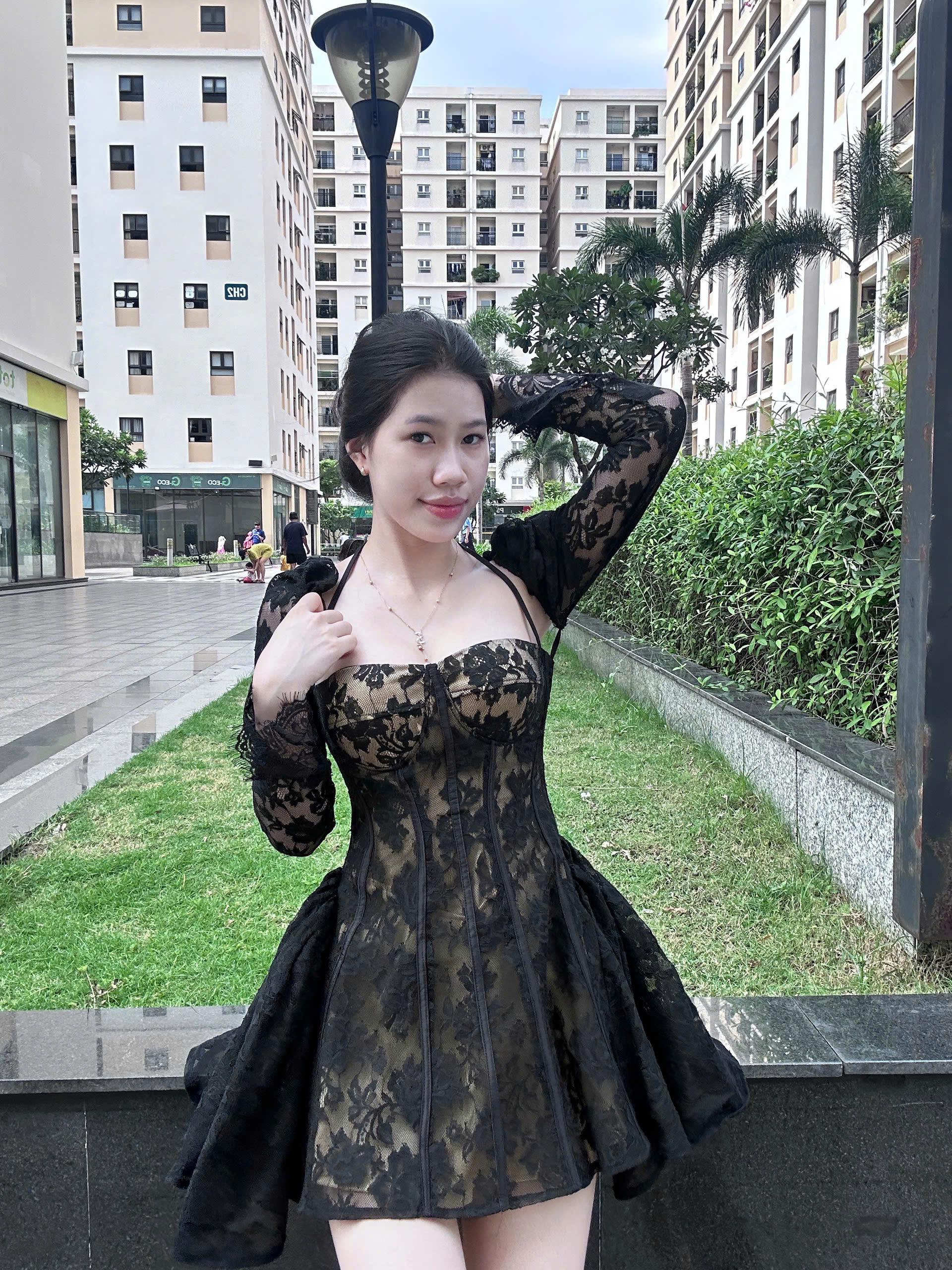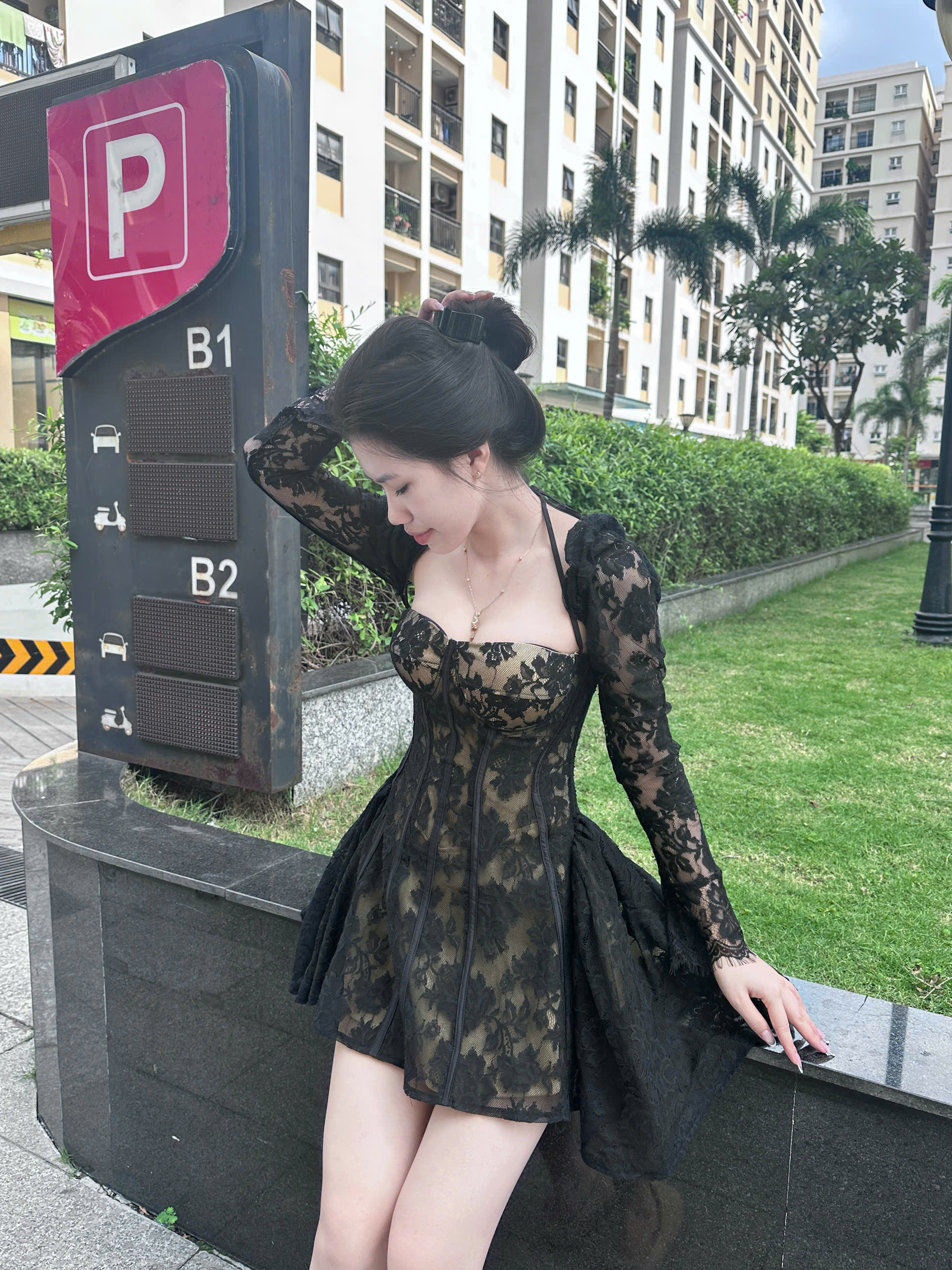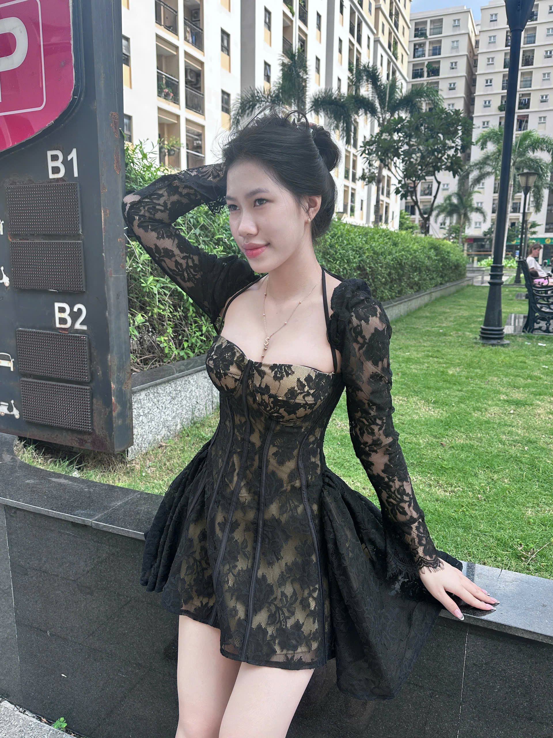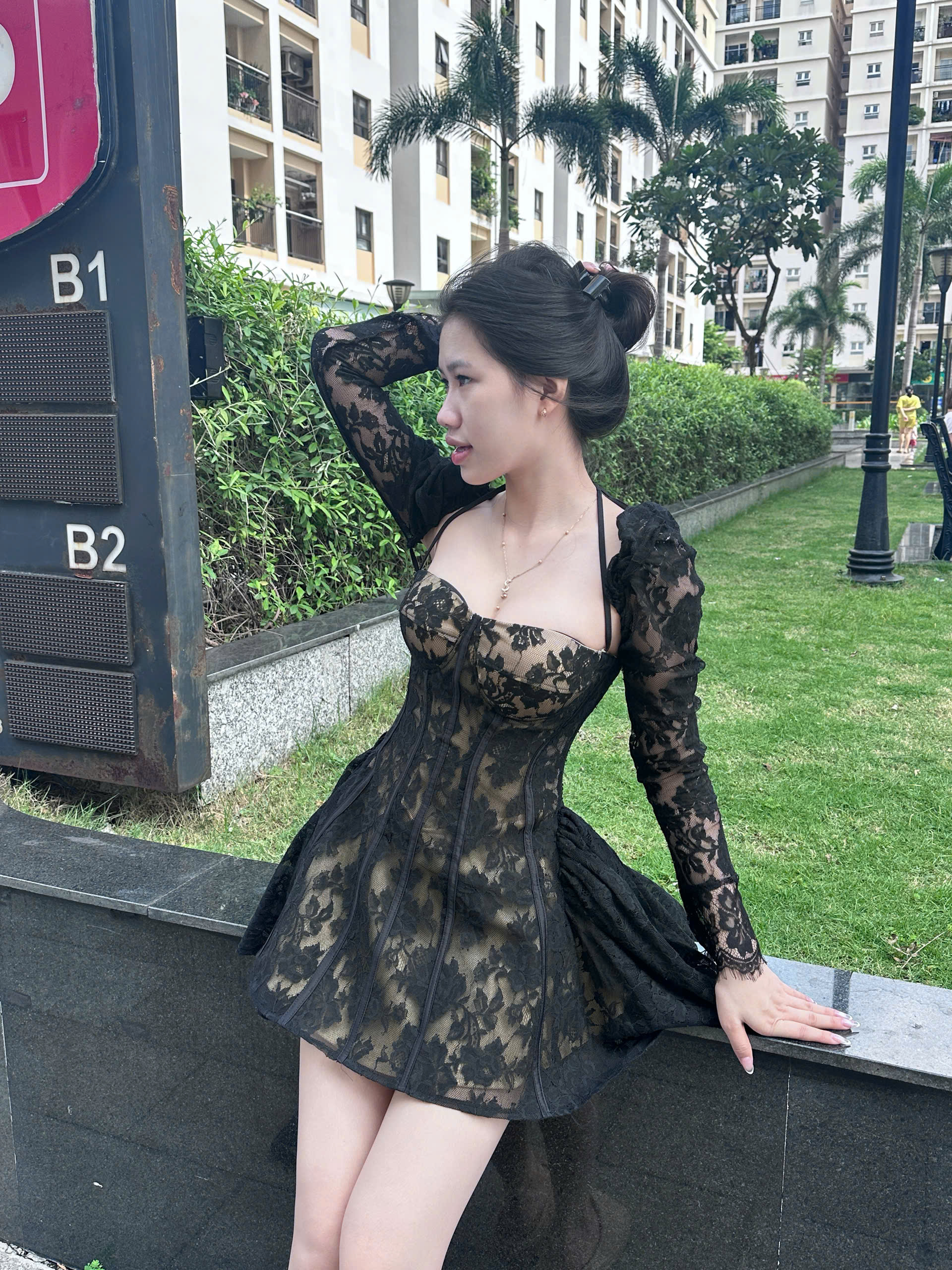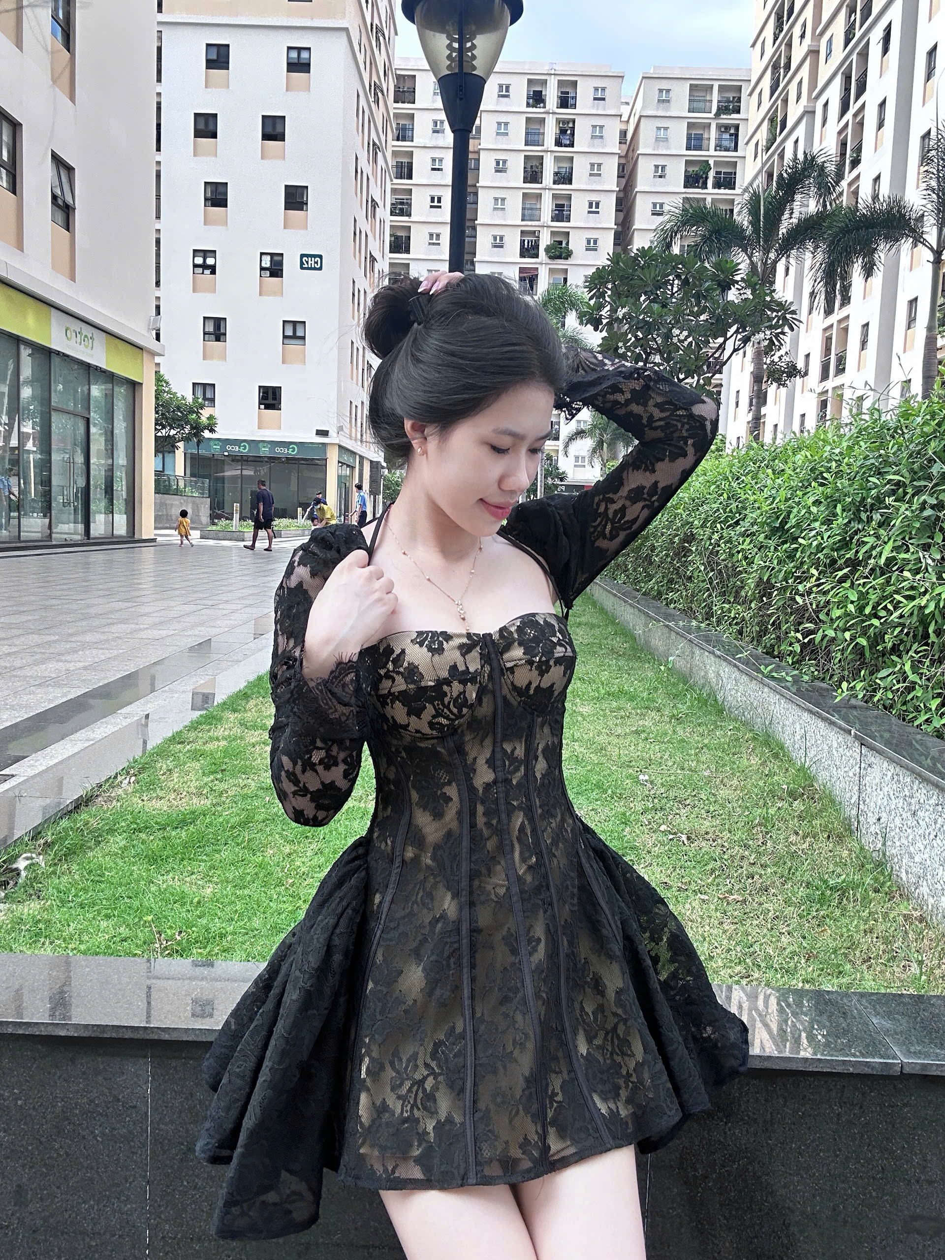 Chiếc váy ren đen corset chính là “tuyên ngôn gợi cảm” cho những nàng yêu thích sự quyến rũ và cá tính. Phần corset ôm sát giúp định hình vòng eo, trong khi chất liệu ren xuyên thấu tinh tế mang lại vẻ đẹp vừa quyến rũ vừa sang trọng.