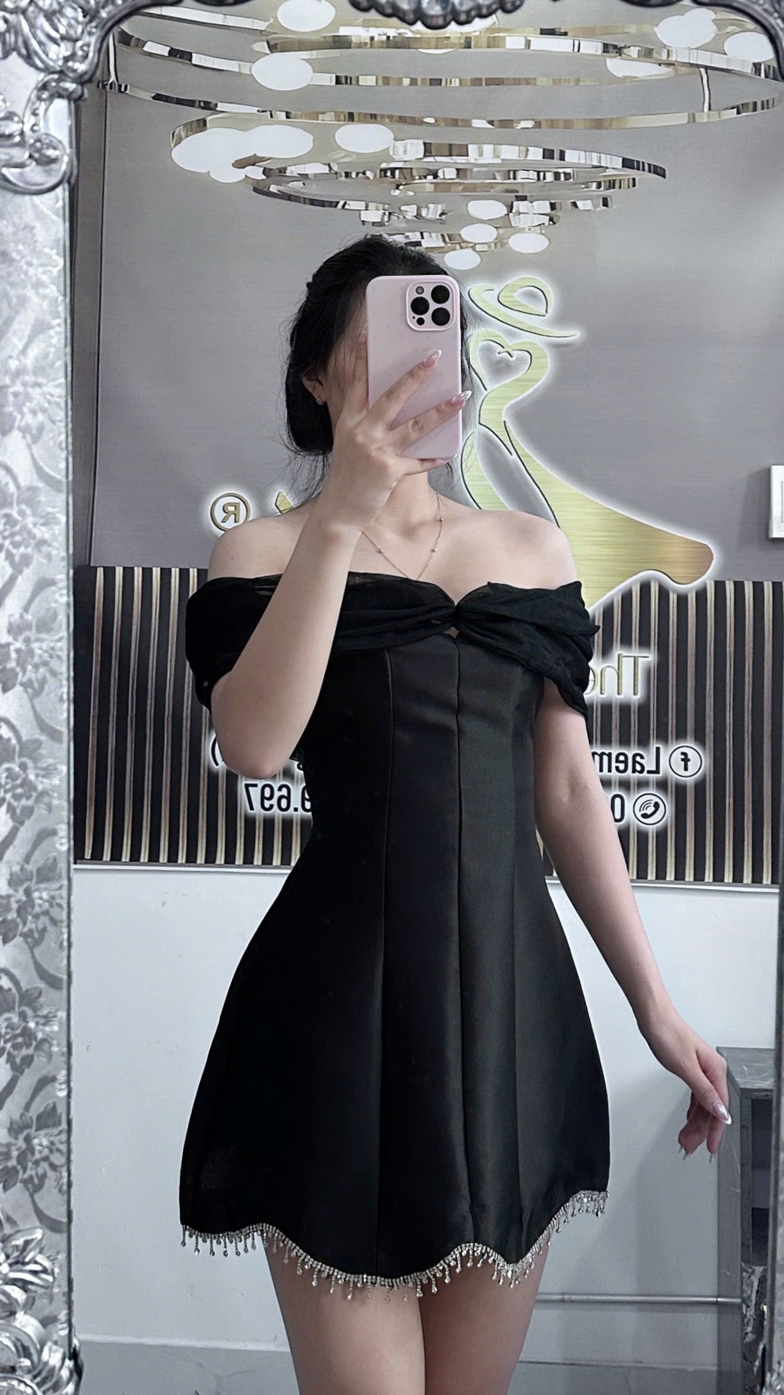 VÁY ĐEN TRỄ VAI ĐÍNH ĐÁ