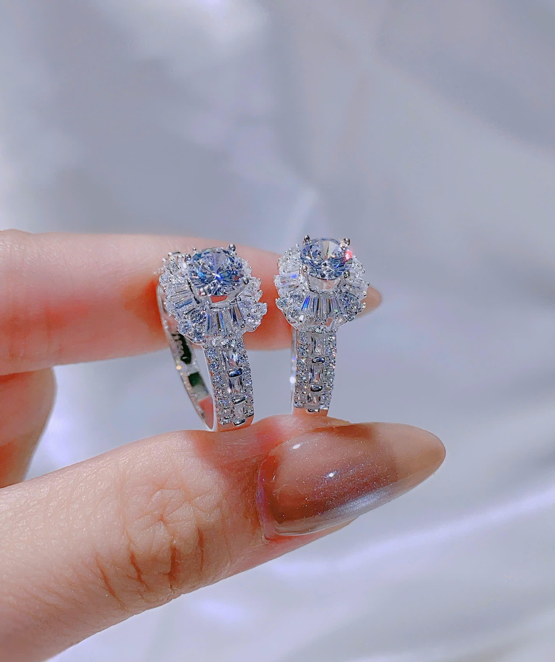 👉 Viên đá giữa tỏa tia baguette như mặt trời, rực rỡ và hút mắt.