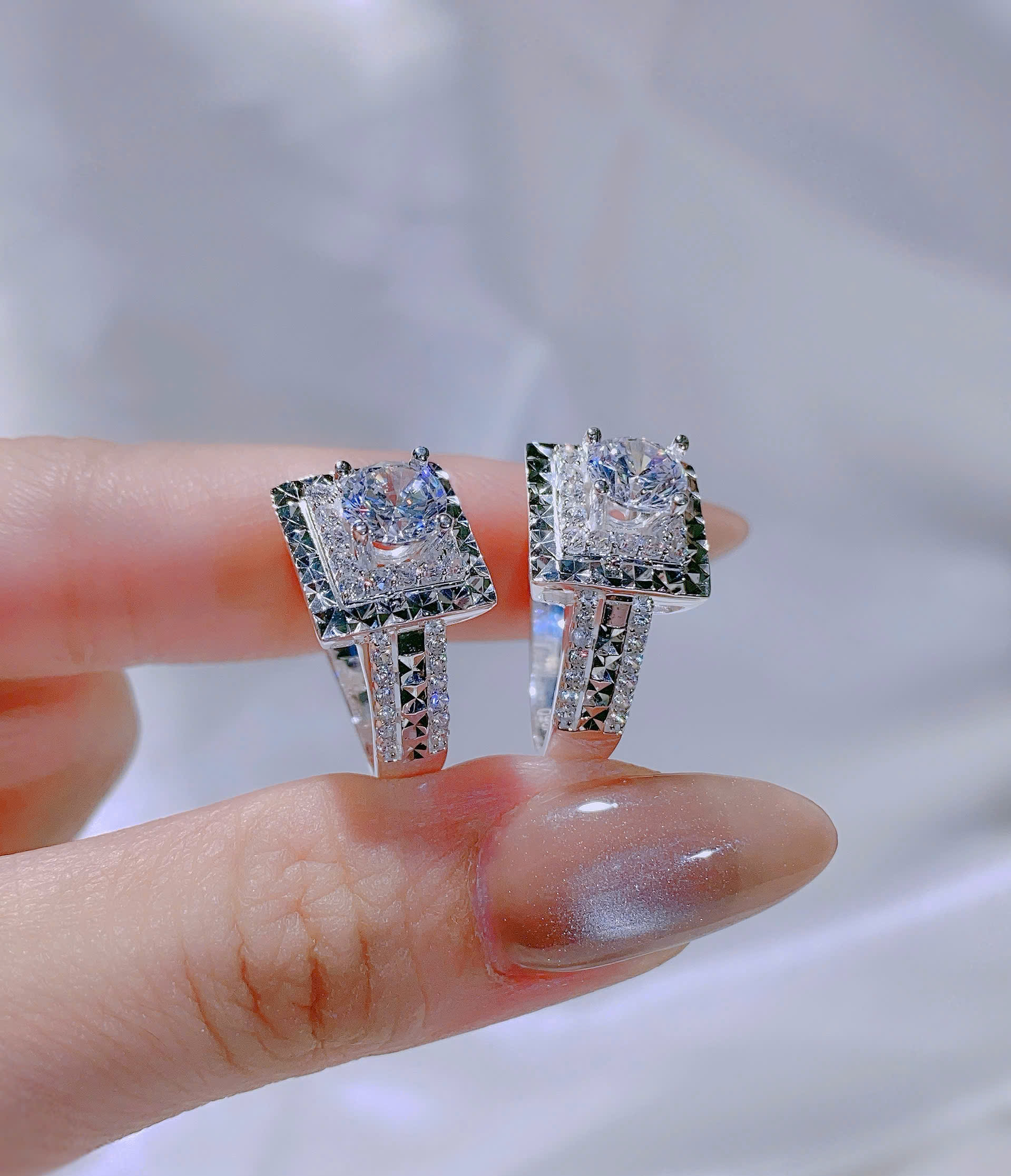 👉 Viền vuông đính đá đen xen trắng, cá tính và hiện đại.